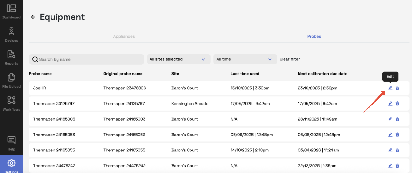 Click Edit (or the pencil icon ✏️) next to the probe name.