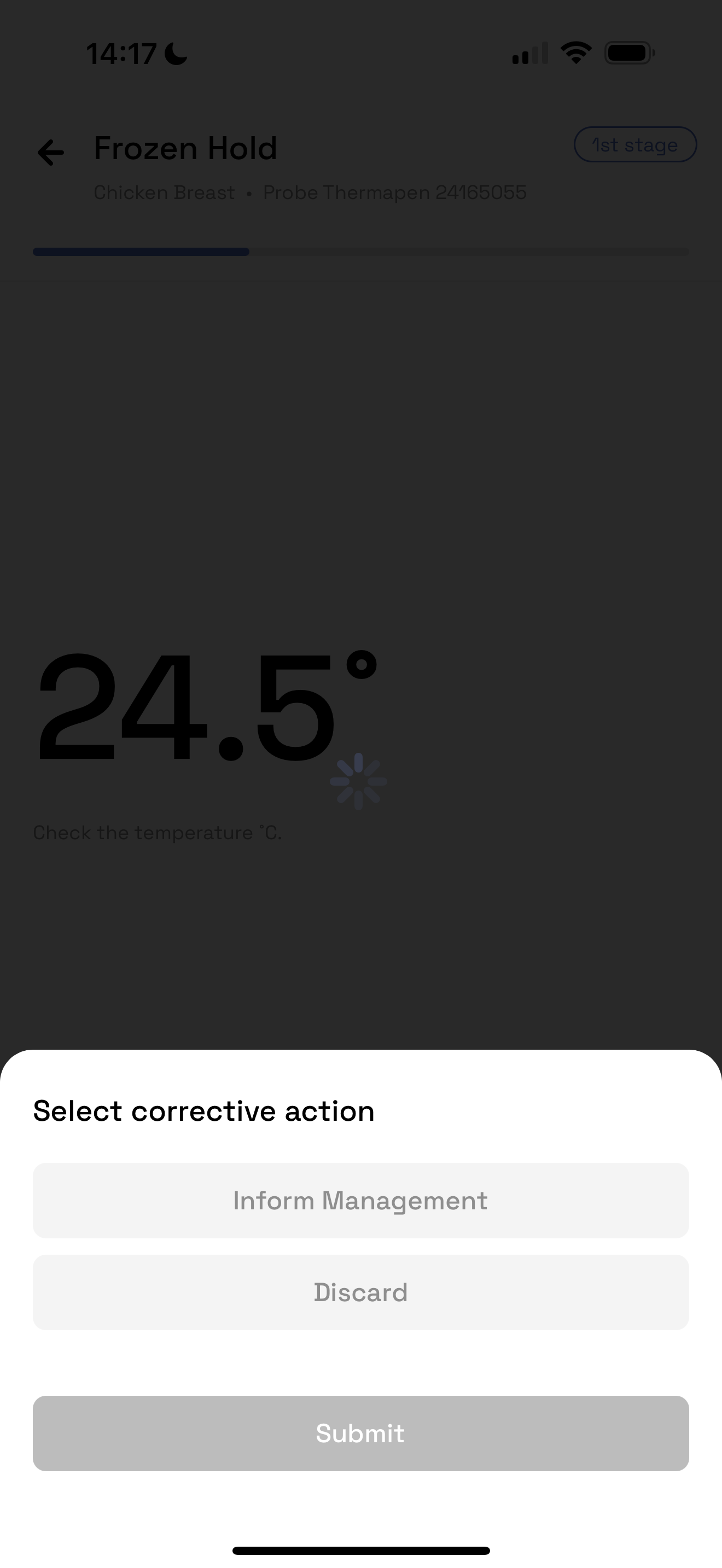 If above the guidance temperature, a corrective action must be logged and the check is closed
