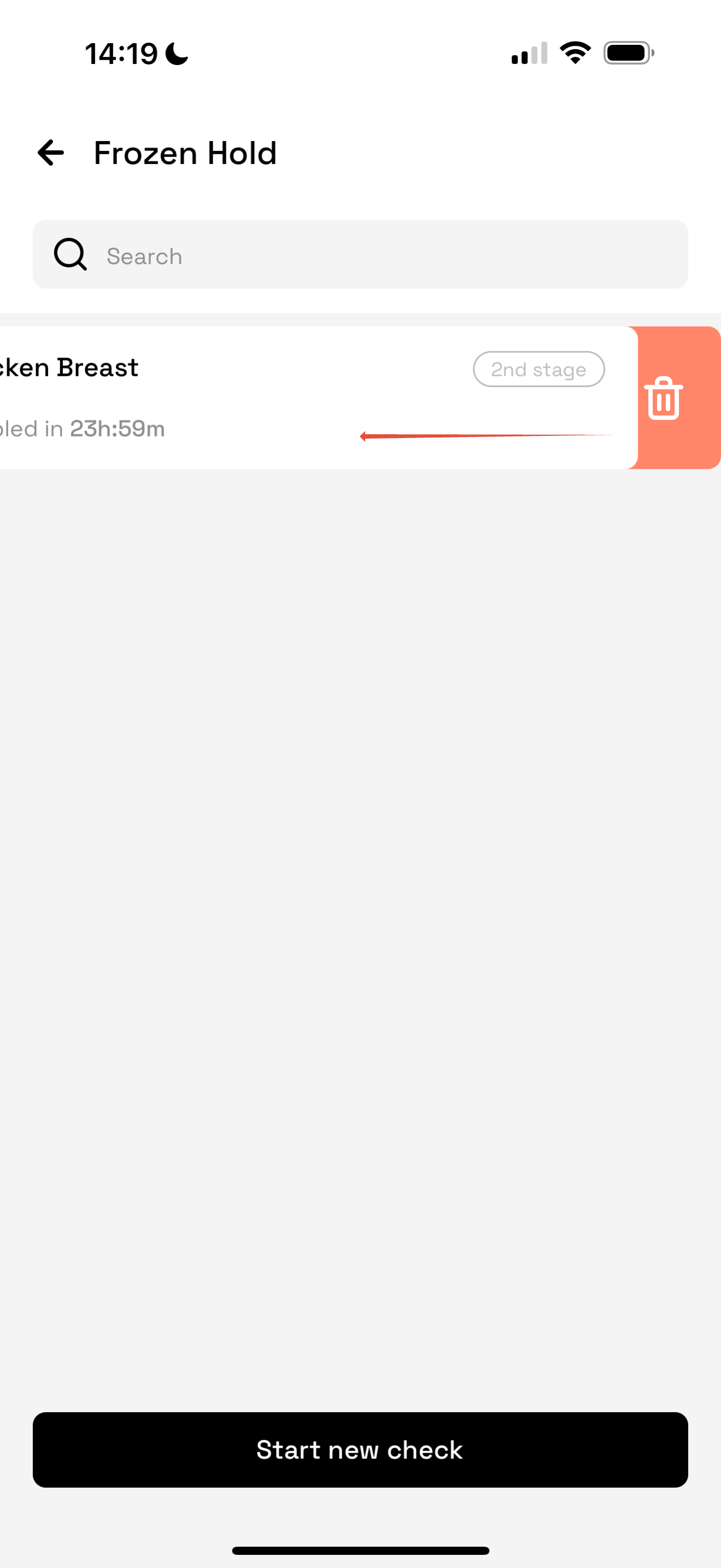 Users can delete an in-progress check by swiping left