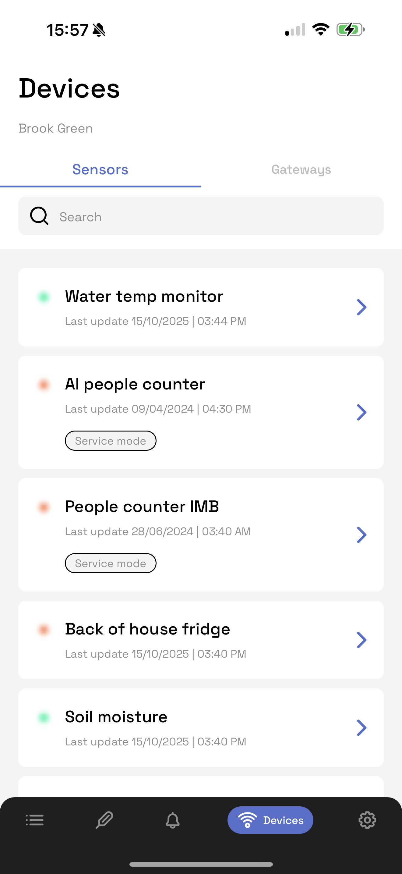 From this tab, you can easily monitor your sensors and gateways from the Devices tab.