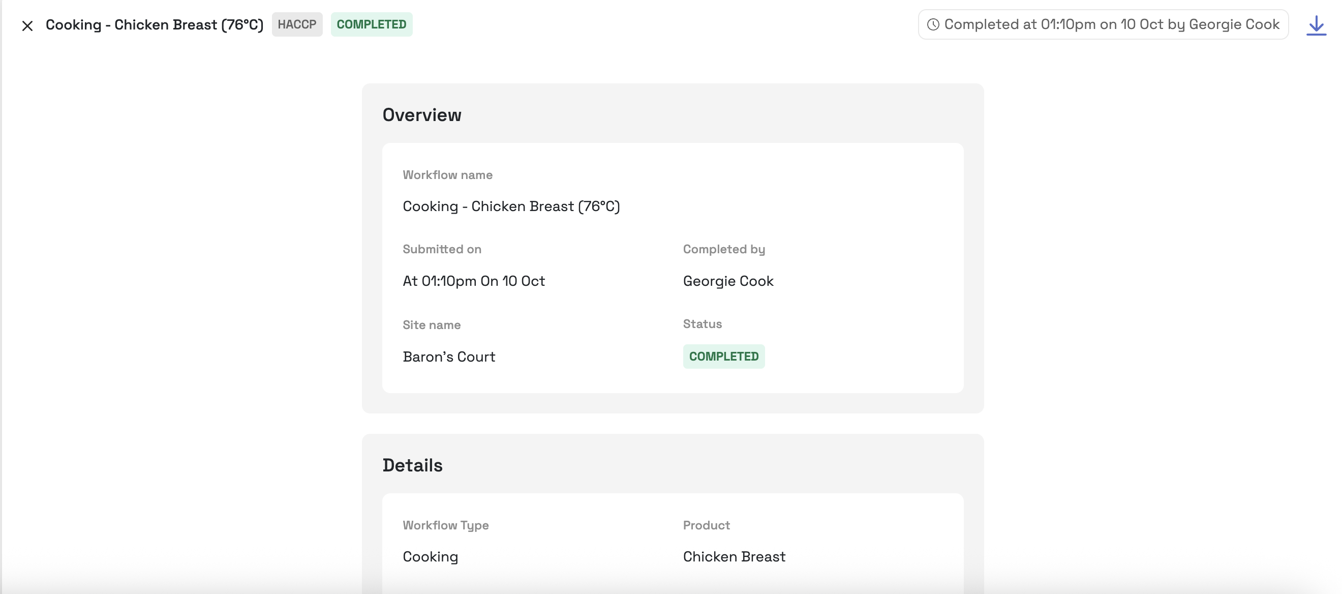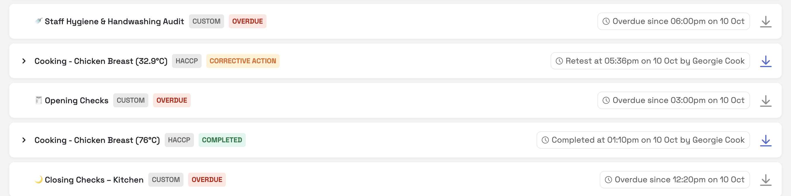 Click into a completed check, to understand and review the details in more depth. This is useful during an inspection and the auditor asks to see more details. You can also download the report here.