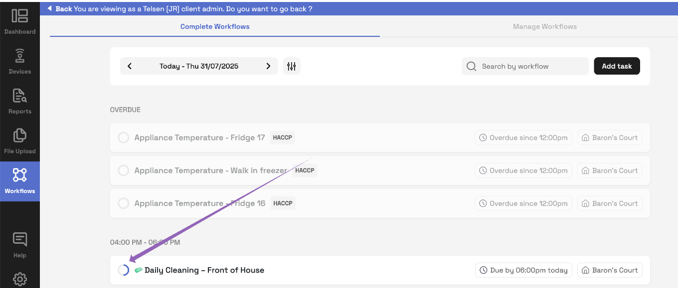 You'll now see a list of workflows scheduled for today.