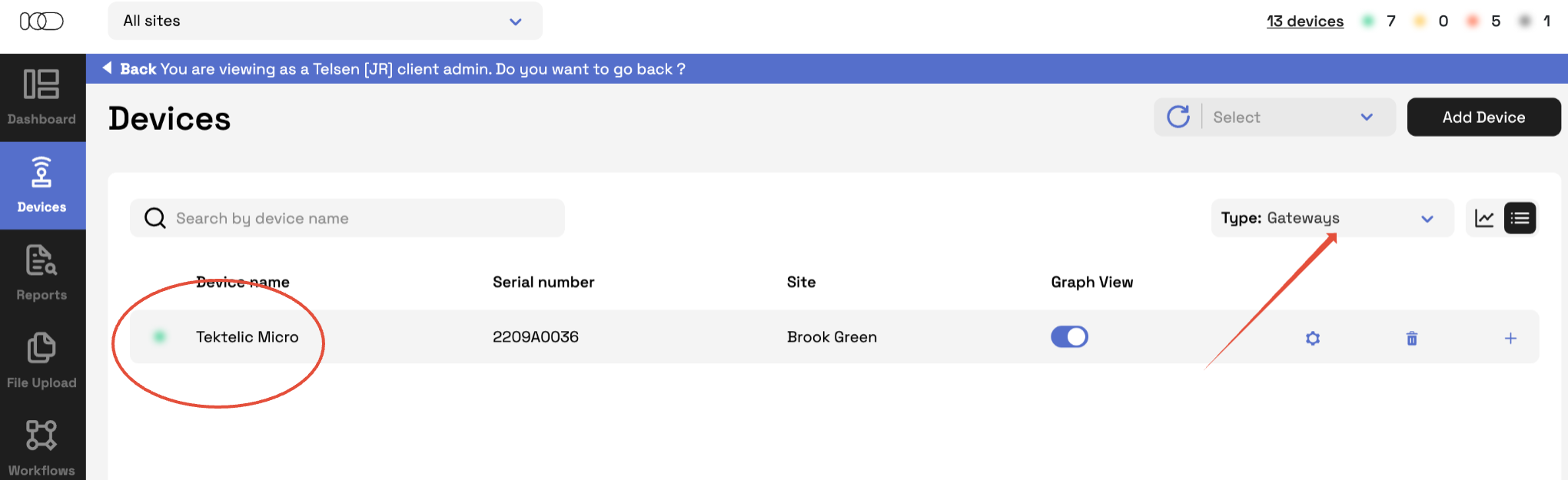 2. Go to Devices → Gateways → List View.