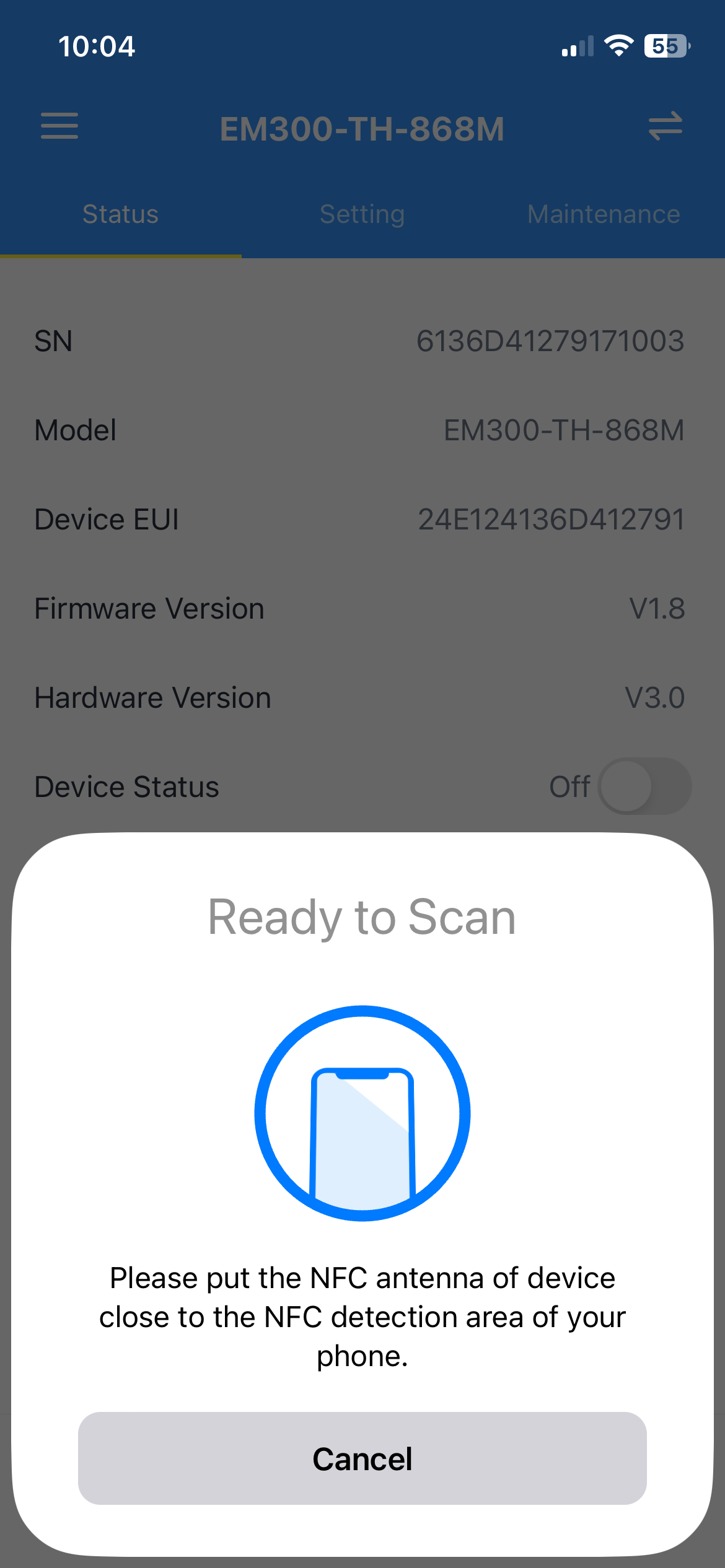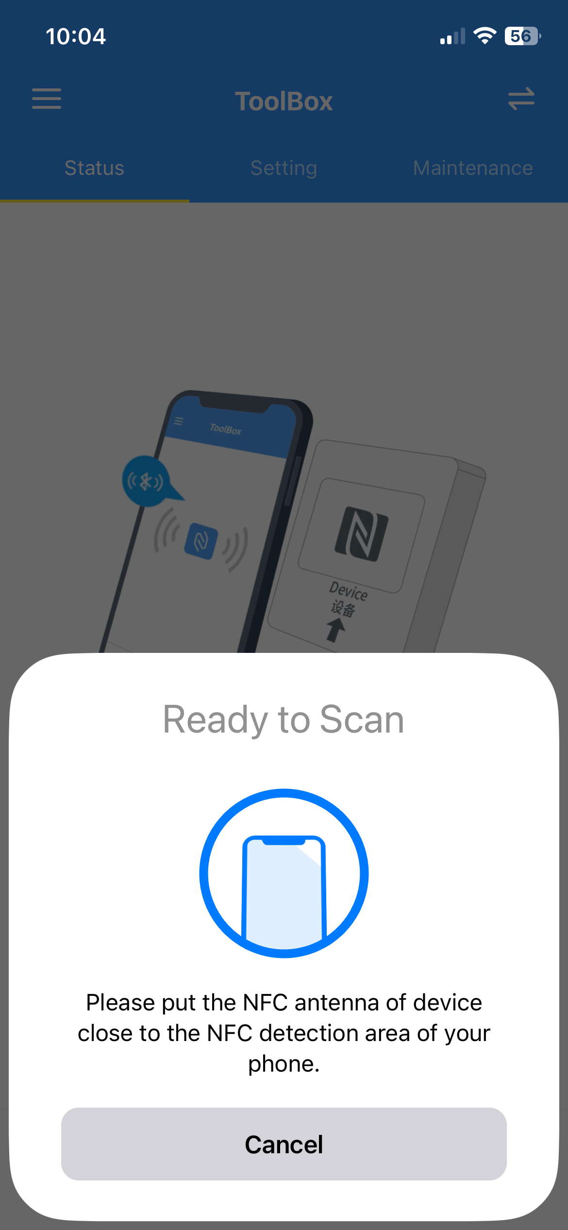 Tip - hold your phone perpendicular to the sensor and keep it still while scanning to ensure the NFC connection works properly.