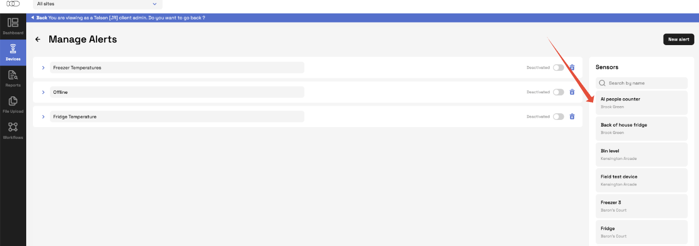 • “Fridge High Temp” → assign all fridge sensors across relevant sites.