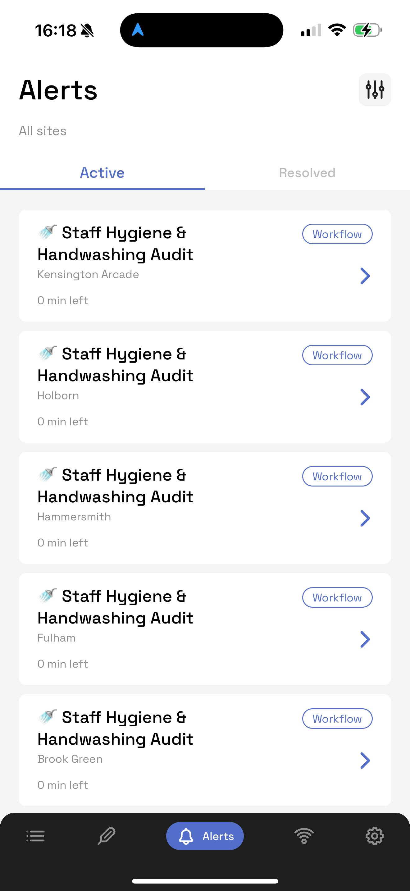 • Alerts with corrective actions logged within the last 24 hours